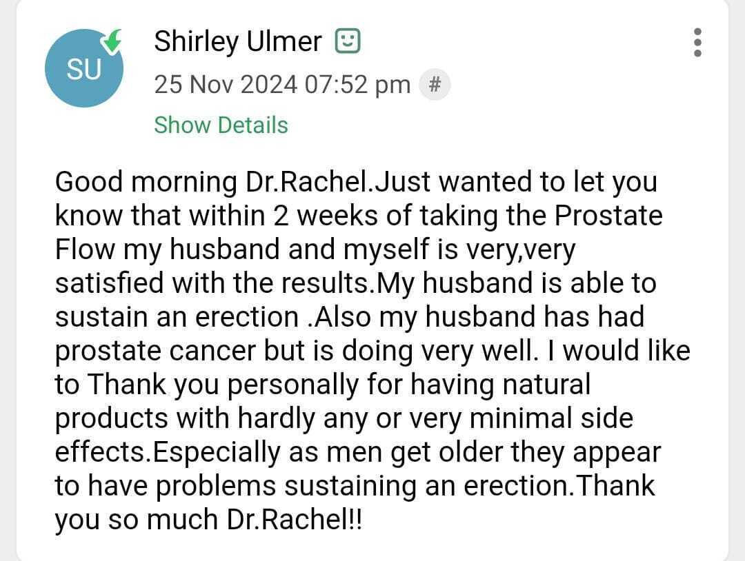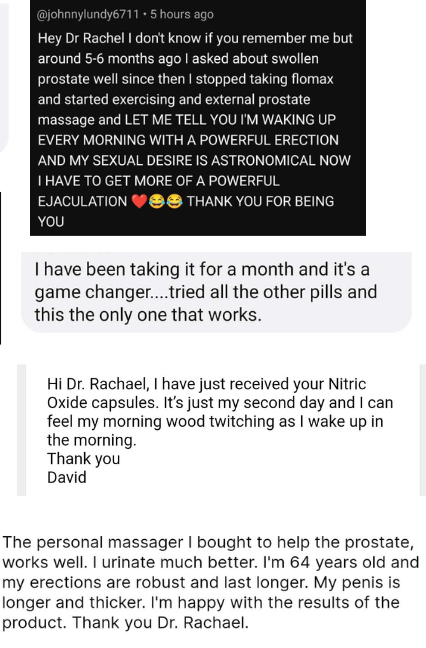 Hey Dr Rachel I dont know if you remember me but around 5-6 months ago I asked about swollen prostate well since I stopped taking flomax and started exercising and external prostate massage and LET ME TELL YOU IM WAKING UP EVERY MORNING WITH A POWERFUL ERECTION AND MY SEXUAL DESIRE IS ASTRONOMICAL NOW I HAVE GET MORE OF A POWERFUL EJACULATION THANK YOU FOR BEING YOU