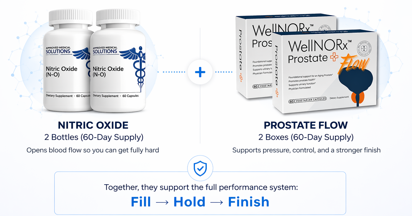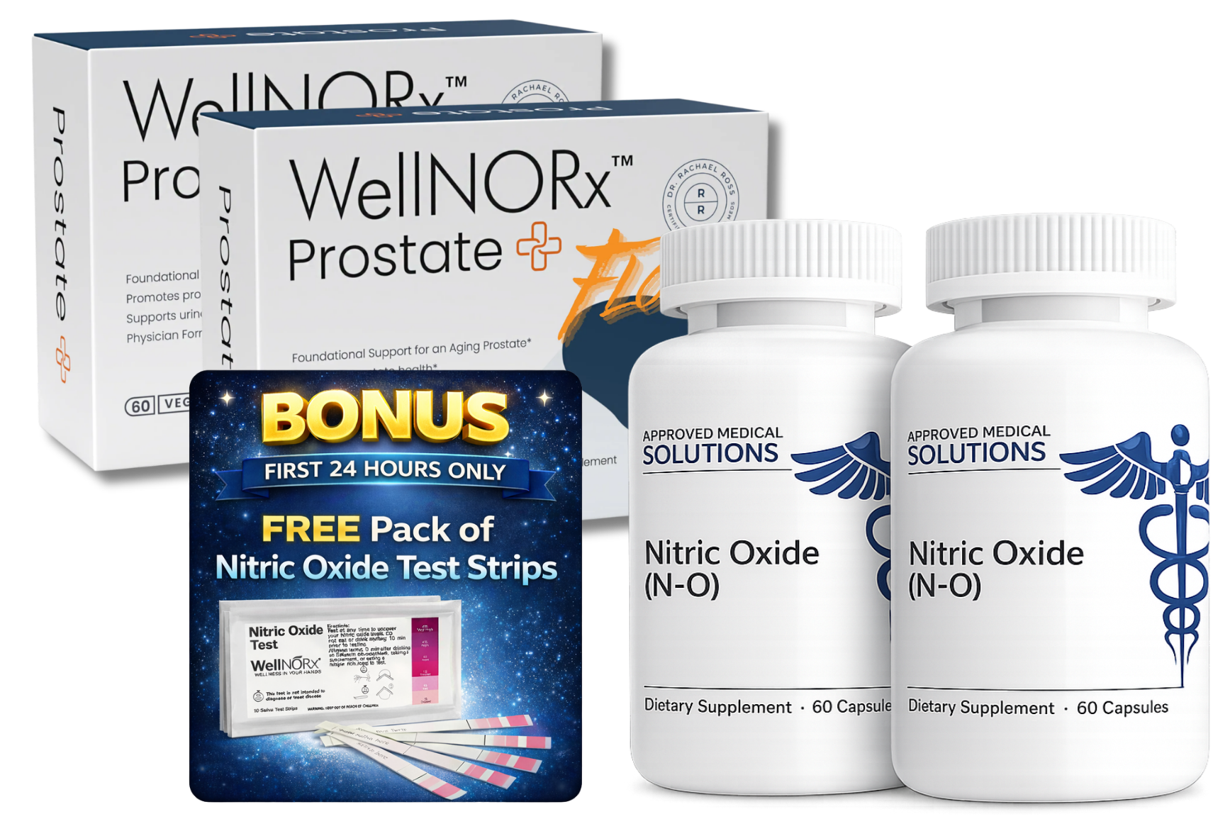 Follow the instructions on each bottle. Typically, Prostate + Flow is taken twice daily with meals, and nitric oxide is taken once or twice daily. Consistency is key.