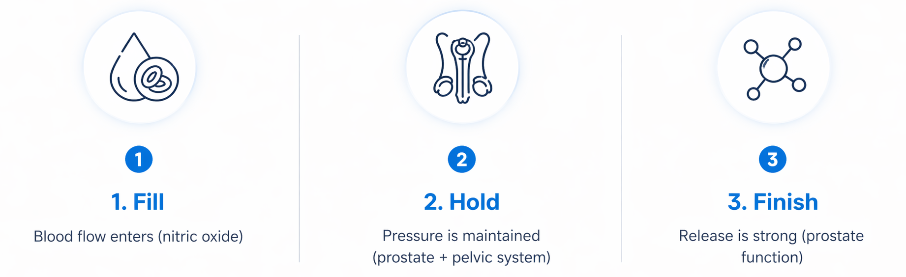 Less urgency. Less guessing. When the prostate inflammation goes down and circulation improves, the whole system works on your schedule, not against it.